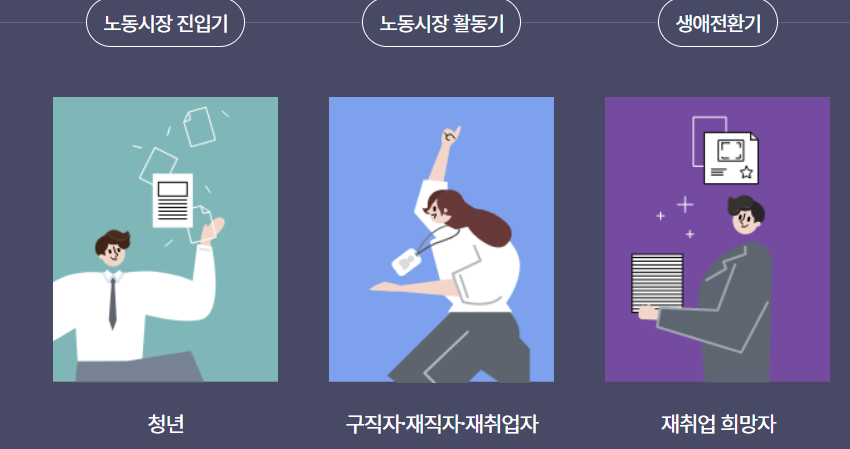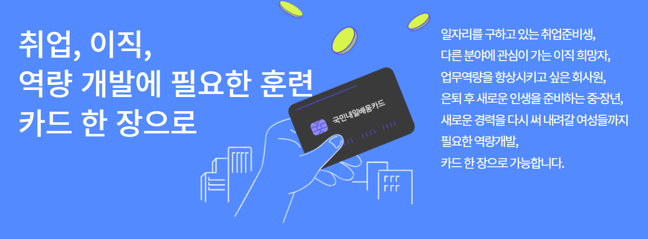 은퇴 후 새로운 인생을 준비하는 중·장년, 새로운 경력을 다시 써 내려갈 여성들까지 필요한 역량개발 훈련을 받을 수 있는 제도입니다.