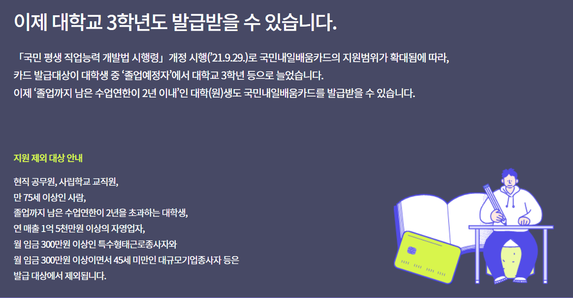 카드 발급대상이 대학생 중 ‘졸업예정자’에서 대학교 3학년 등으로 늘었습니다.