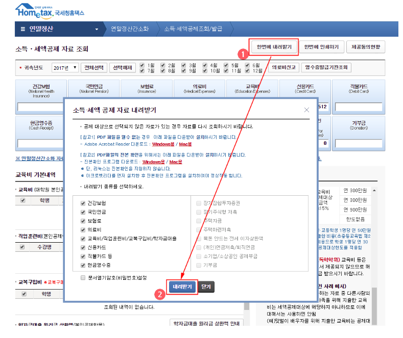 - 24년 1월 20일 ~ 3월 11일: 간소화자료 확인 및 내려받기
