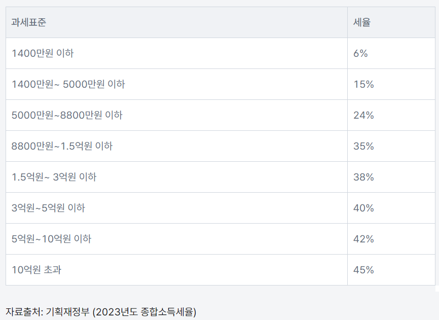 국세청에서 과세표준을 기준으로 세금을 부과하게 됩니다. 과세 표준이 크면 클수록 적용되는 세율을 높아집니다.