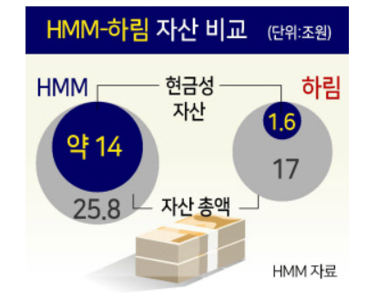 하림그룹의 자산규모는 17조, HMM의 자산규모는 25조8000억쯤 된다고 합니다.
